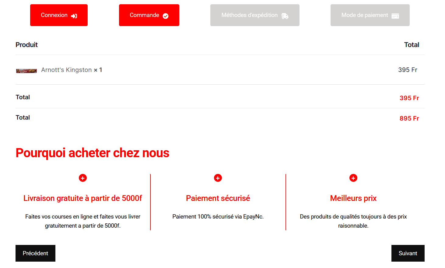 Vous retrouverez votre panier avec vos différents produits.